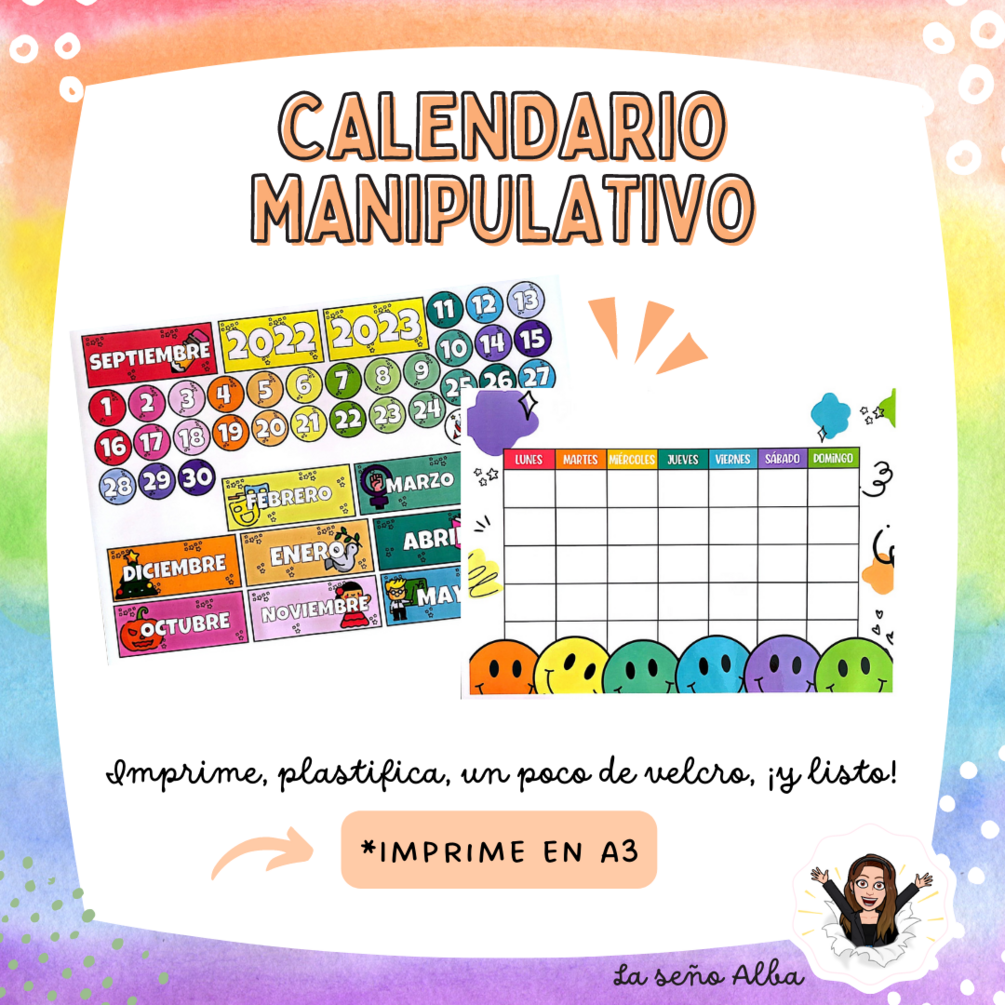 Hoy os traigo un material imprescindible para nuestra clase 👩🏽‍🏫 Un calendario manipulativo a todo color 🌈