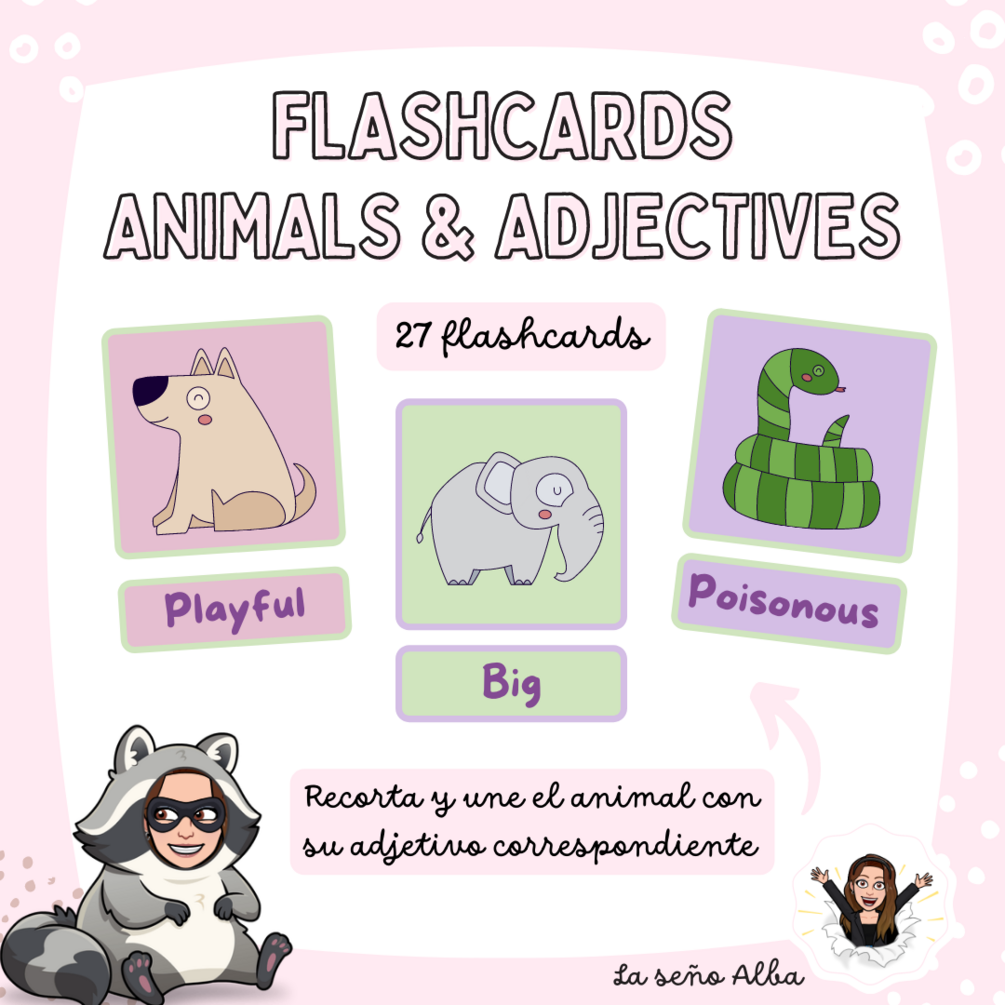 Flashcards animals & adjectives